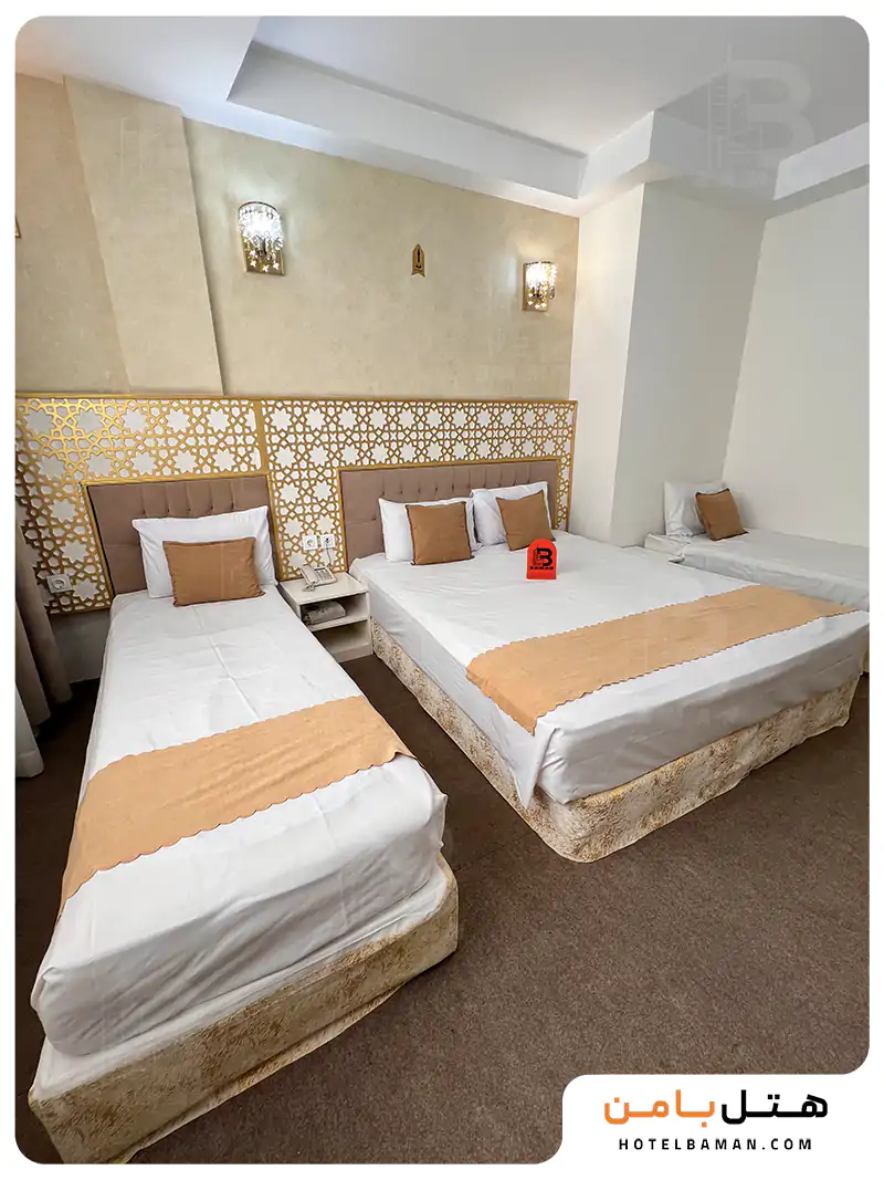 هتل گوهر مشهد یکی از هتل های سه ستاره محبوب و نوساز شهر مشهد است که در سال ۱۴۰۰ افتتاح شد و با موقعیت مکانی بی نظیر خود، انتخابی ایده آل برای زائران حرم مطهر امام رضا (ع) محسوب می شود. این هتل تنها چند دقیقه پیاده روی تا بارگاه ملکوتی امام رضا (ع) فاصله دارد و همین موضوع باعث شده مورد توجه مسافران و زائران قرار گیرد. علاوه بر دسترسی نزدیک به حرم این هتل در محدوده، بازار رضا، موزه آستان قدس رضوی، پارک میرزا کوچک خان و رستوران های معروف مشهد واقع شده است. هتل گوهر دارای ۵ طبقه و ۵۲ واحد اقامتی با مجموع ۱۳۵ تخت است و لابی آن با ظرفیت ۴۰ نفر، محیطی آرام و دلنشین برای استقبال از مهمانان فراهم کرده است. اتاق های این هتل در انواع دو تخته، سه تخته، چهار تخته و پنج تخته طراحی شده اند تا پاسخگوی نیاز گروه های مختلف مسافران باشند. تمام اتاق ها مجهز به امکاناتی همچون تلویزیون، سیستم تهویه مطبوع، یخچال، سرویس بهداشتی ایرانی و فرنگی، مبلمان راحت، اینترنت پرسرعت رایگان و سیستم اطفای حریق هستند تا اقامتی مطمئن و دلپذیر را تضمین کنند. رستوران هتل گوهر با منوی بوفه متنوع برای وعده های صبحانه، ناهار و شام و همچنین کافی شاپ دنج آن با انواع نوشیدنی های گرم و سرد، تجربه ای خوشایند از اقامت را برای مهمانان رقم می زند. نزدیکی به ایستگاه های حمل ونقل عمومی، رفت وآمد به دیگر نقاط شهر را راحت کرده است. قیمت مناسب و کیفیت خدمات ارائه شده در هتل گوهر باعث شده این مجموعه در میان مسافران به عنوان یکی از بهترین گزینه های اقامت اقتصادی در مشهد شناخته شود. تمیزی اتاق ها، برخورد حرفه ای پرسنل، تنوع غذایی و فضای آرام، از جمله ویژگی هایی هستند که رضایت مهمانان را جلب کرده اند. اگر به دنبال رزرو هتلی با امکانات کامل، دسترسی سریع به حرم امام رضا (ع) و قیمت مقرون به صرفه هستید، هتل گوهر مشهد می تواند بهترین انتخاب برای سفر شما باشد.