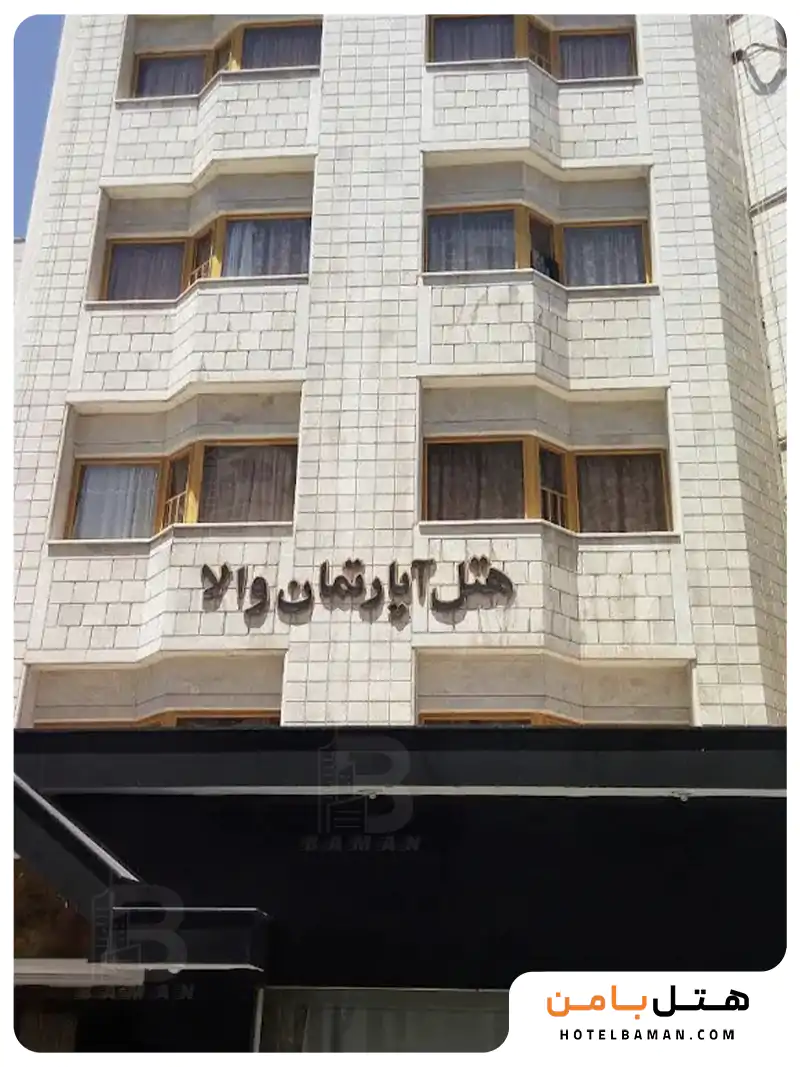 هتل آپارتمان والا مشهد در خیابان پاسداران واقع شده و به دلیل نزدیکی به حرم مطهر امام رضا (ع) و سایر جاذبه های مهم شهر، گزینه ای مناسب برای زائران و مسافران به شمار می رود. این هتل آپارتمان جهت ارتقا کیفیت و خدمات در سال 1390 مورد بازسازی قرار گرفته است. این هتل با واحدهای اقامتی مجهز به یخچال، تلویزیون، سرویس بهداشتی و حمام، اقامتی راحت و بی دغدغه را برای مهمانان فراهم می کند. از امکانات هتل می توان به اتاق های مجهز با حمام اختصاصی، رستوران با منوی متنوع غذاهای ایرانی و خدمات نظافت روزانه اشاره کرد. موقعیت مکانی هتل آپارتمان والا دسترسی آسانی به نقاط مهم شهر دارد. اگر قصد رزرو هتل در مشهد دارید، این هتل یک گزینه خوب است.