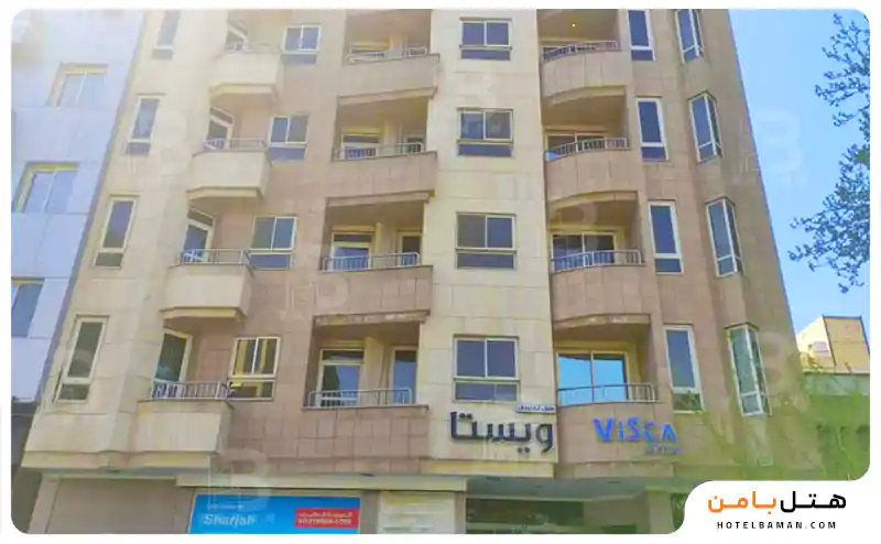 - هتل آپارتمان ویستا یک هتل اقتصادی در شهر مشهد است. این هتل در سال 1390 افتتاح شده و در ساختمانی با 5 طبقه مثبت و یک طبقه منفی قرار دارد. در مجموع 30 واحد اقامتی به همراه فضاهای عمومی در این مجموعه برای میزبانی از مهمانان در نظر گرفته شده است. این هتل آپارتمان دارای واحدهای اقامتی دو تخته، سه تخته، چهار تخته و پنج تخته بوده که هر کدام از امکاناتی مثل تلویزیون، یخچال، سیستم گرمایشی و سرمایشی، حمام و سرویس بهداشتی ایرانی و فرنگی برخوردار می باشند. اگر قصد رزرو هتل آپارتمان در سفر به مشهد دارید، ما به شما هتل آپارتمان ویستا پیشنهاد می کنیم.
